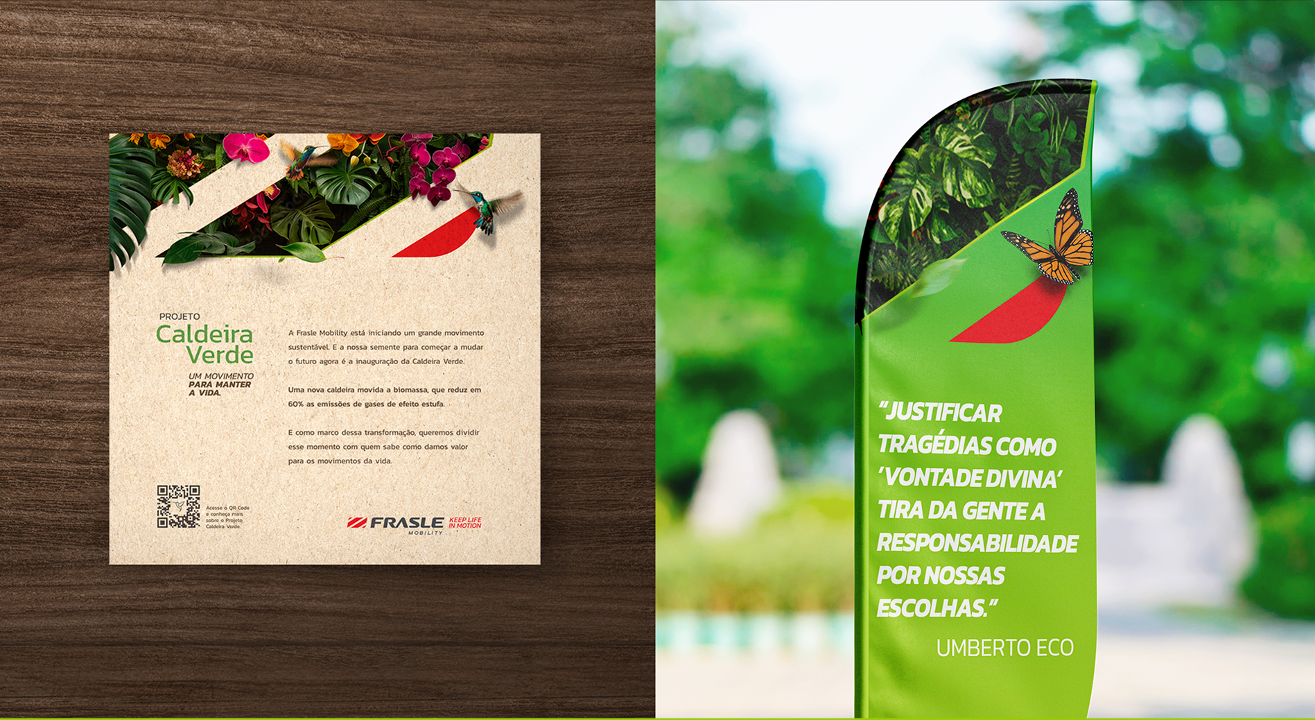Frasle Mobility took a major step toward sustainability with the inauguration of the Caldeira Verde (Green Boiler). Powered by biomass, it reduces the company’s greenhouse gas emissions by up to 60%. To mark this milestone, we created a campaign that raised public awareness and positioned the brand as a window into an even more sustainable future.