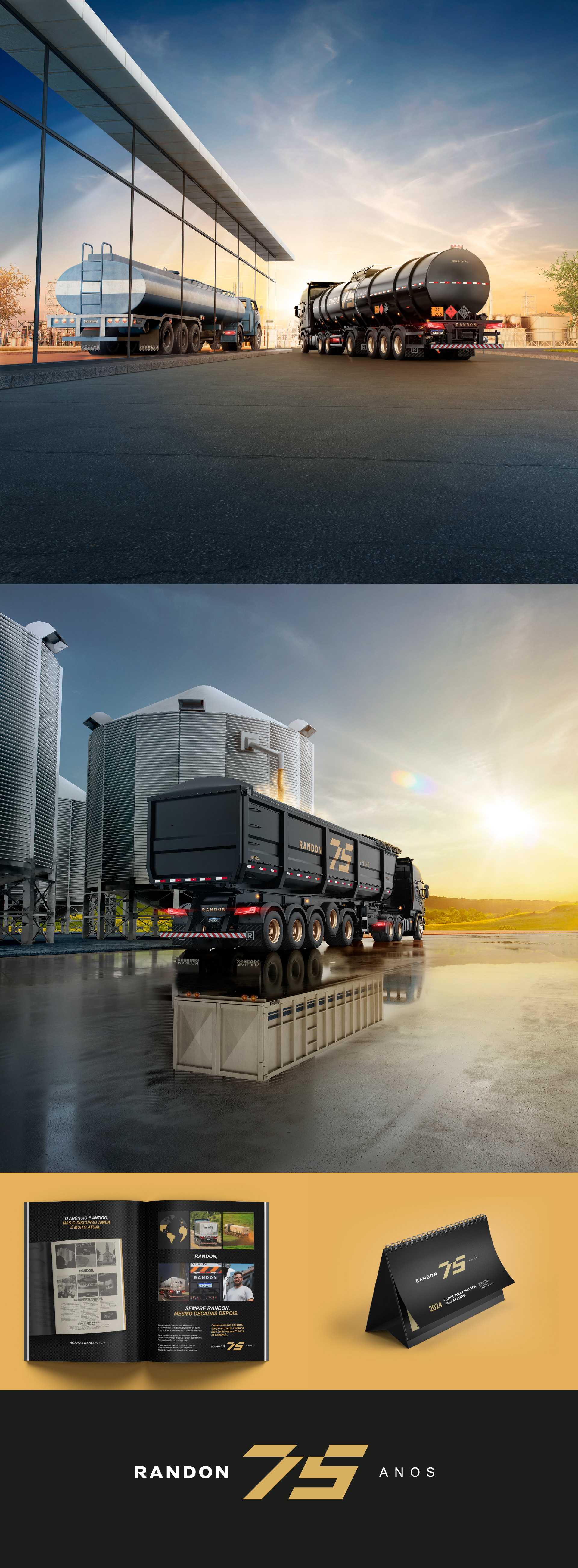 Randon celebrates 75 years of driving the history of transportation forward. A leader in Latin America, the brand brings together past and future in a campaign that combines cutting-edge technology with historical images recreated using artificial intelligence. The special New R75 line, in black and gold, stands as a symbol of this celebration. It reflects a trajectory that continues to shape the future through innovation, without losing its connection to its origins.